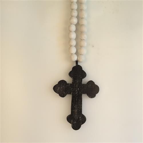 Menya Necklace Black Cross w White 10cm x 65cm long