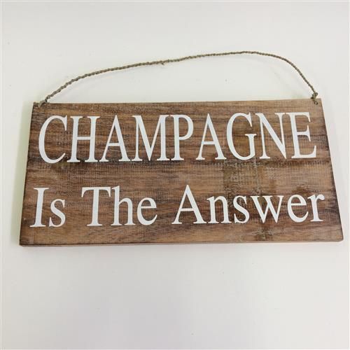 Wall SIgn "Champagne" Nat/White 40cm x 20cm high