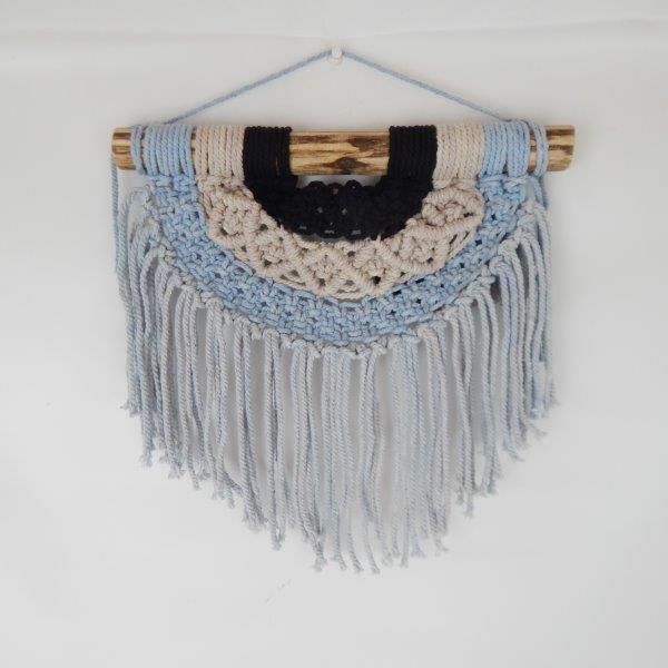 Macrame Hanging Small Cream/Blue/Black 30cm x 30cm high