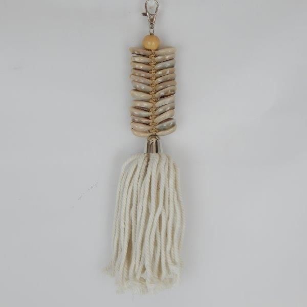 Tassel w Cowrie Shells Cream 4cm x 28cm long