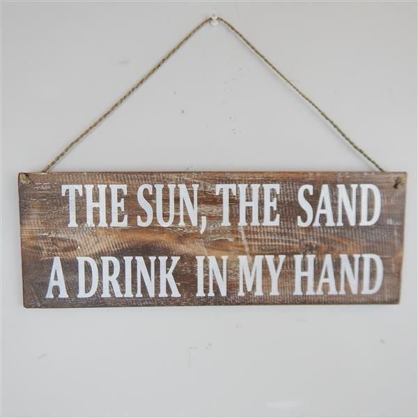 Wooden Sign "The Sun, the Sand, a Drink" 42cm x 15cm