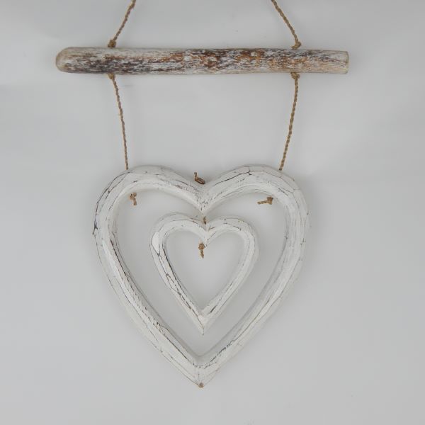 Driftwood Strand Hollow Heart 3 Whitewash 80cm