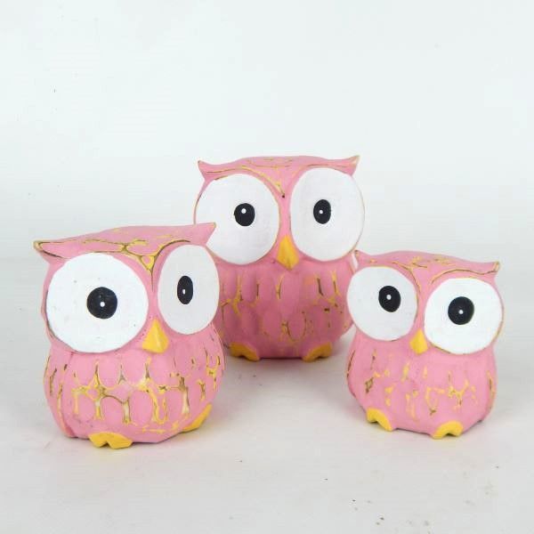 Owls s/3 Pink 7cm / 8cm / 10cm high