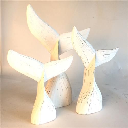 Wooden Whale Tails s/3 Whitewash 37/40/47cm