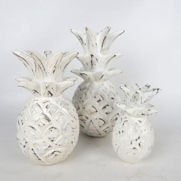 Wooden Pineapple s/3 Whitewash 15cm/20cm/25cm h