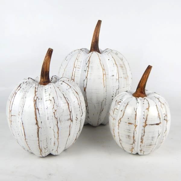 Wooden Pumpkins s/3 Whitewash 15x25/18x28/23x35cm