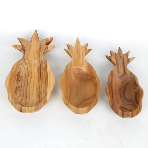 Teak Pineapple Dishes s/3 10x23/11x25/14x30cm high