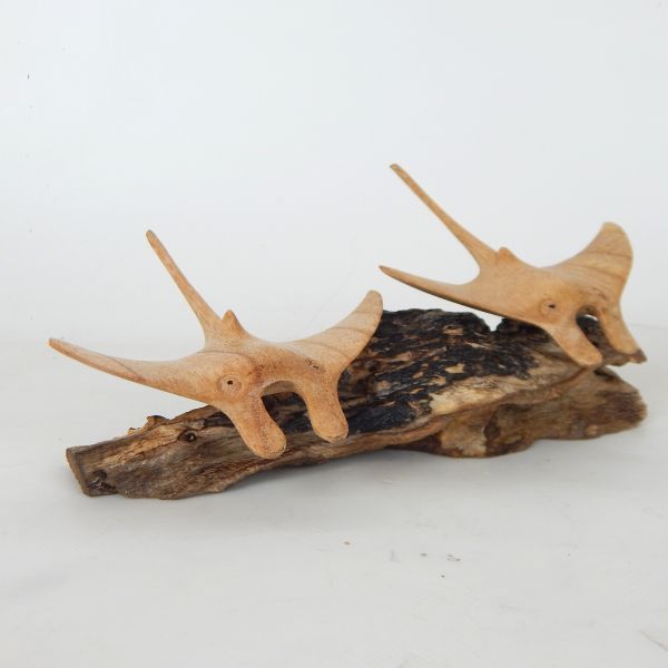 Handcarved Wooden Mantaray s/2 Approx 20 x 12 x 8cm h