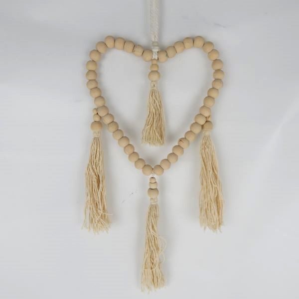 Beaded Tassel Heart Natural 15cm x 35cm long