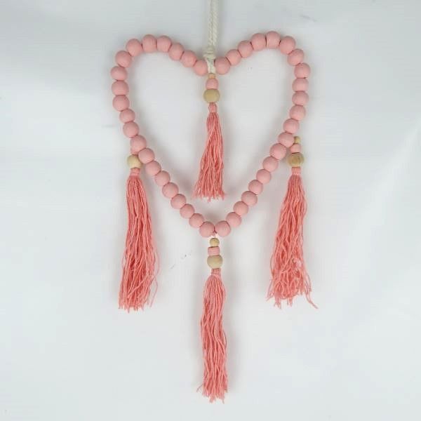 Beaded Tassel Heart Pink 15cm x 35cm long