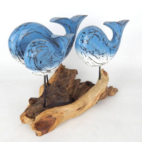 Blue Wooden Whales s/3 40cm x 20cm x 25cm h