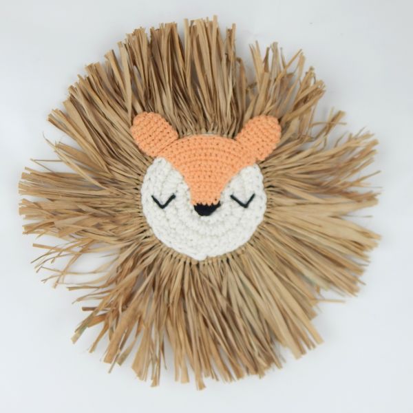Raffia Fox w Eyes closed 35cm dia