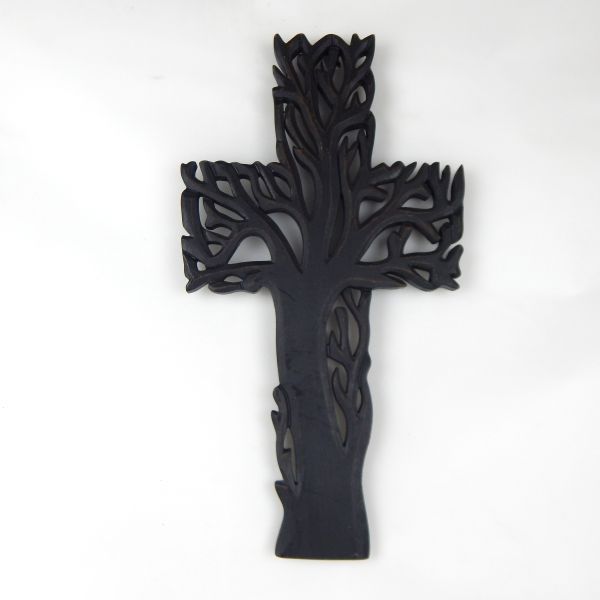 Carved Tree of Life Cross Blackwash 22cm x 40cm h