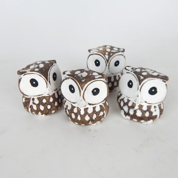 Mini Owls s/4 Whitewash 6cm x 6cm h