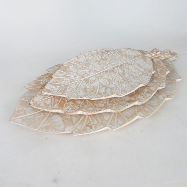 Wooden Leaf Trays s/3 W/Wash 20x33 / 24x40 / 30x50cm