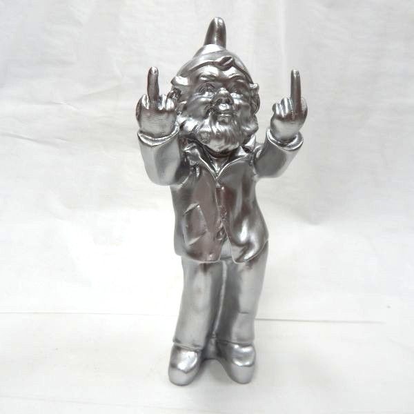 Gnome Double Finger Silver 30cm high