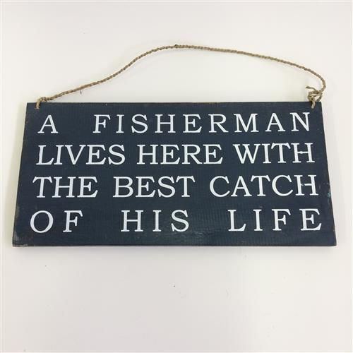 Wall Sign 'A fisherman' Navy 40cm x 20cm h